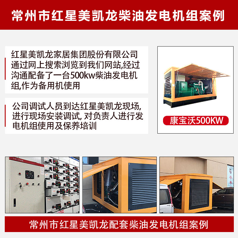 工廠車間收到訂單后,根據(jù)客戶需求,在四天左右完成了訂單,公司調(diào)試人員跟隨發(fā)電機(jī)組到達(dá)紅星美凱龍現(xiàn)場(chǎng),進(jìn)行現(xiàn)場(chǎng)安裝調(diào)試,隨后對(duì)紅星美凱龍負(fù)責(zé)人進(jìn)行發(fā)電機(jī)組使用及保養(yǎng)培訓(xùn)。