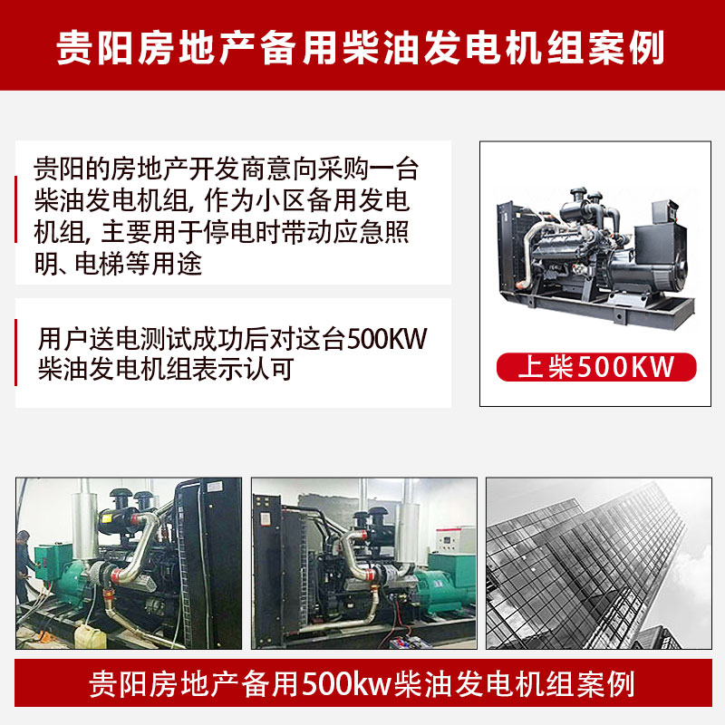 貴陽的房地產(chǎn)開發(fā)商意向采購一臺(tái)柴油發(fā)電機(jī)組,作為小區(qū)備用發(fā)電機(jī)組,主要用于停電時(shí)帶動(dòng)應(yīng)急照明、電梯等,以及發(fā)生火災(zāi)或危險(xiǎn)情況時(shí)帶動(dòng)消防泵、電動(dòng)工具等。機(jī)組功率要根據(jù)小區(qū)的負(fù)荷來計(jì)算,還要考慮電梯、消防泵的啟動(dòng)電流問題。例如電梯在滿載時(shí)上行時(shí),啟動(dòng)電流是額定電流的7倍。經(jīng)過和設(shè)計(jì)方、開發(fā)商技術(shù)人員交流,選定了上海分廠500KW柴油發(fā)電機(jī)組。該機(jī)器詳細(xì)技術(shù)參數(shù)請(qǐng)咨詢13280776496。